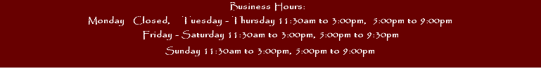 House Specialties Mu Shu Pork (Served w/4 pancakes) 15.50 Choice of Beef, Chicken, Prawns & Vegetables also avaiable Chicken Lettuce Wraps (Served w/4 lettuce cups) 15.50 Minced white meat chicken sauteed with black mushrooms, celery and water chestnuts served in lettuce cups. Prawns Lettuce Wraps (Served w/4 lettuce cups) 17.50 Minced prawns sauteed with black mushrooms, celery and water chestnuts served in lettuce cups. Roasted Duck Meat Lettuce Wraps (Served w/4 lettuce cups) 17.95 Minced roasted duck meat sauteed with black mushrooms, celery and water chestnuts served in lettuce cups. Crispy Smoked Duckling (Served w/4 steamed buns) 19.50 Marinated half duckling in a five-spice sauce, smoked with tea leaves and deep fried to perfection. Asparagus with Triple Crowns 18.95 Asparagus sauteed with chicken, beef and prawns in black bean sauce. House Special Clay Pot 18.95 Combination of Prawns, Chicken, Beef & Scallops with fresh Shitake Mushroom, red onion & Fried Tofu in our special brown sauce. *General Tsou's Chicken 16.50 Specially tenderized chunky chicken sauteed with Chef's special spicy sweet & sour garlic sauce. *Spicy Mango Chicken with Snow Peas 17.50 Crispy fried chicken with fresh mango & snow peas in our special spicy mango sauce. *Lover's Prawns 19.50 Prawns sauteed in two different flavors, sweet and sour spicy and mild white garlic sauce. Honey Walnut Prawns 18.95 Crispy prawns sauteed in a white cream sauce with crispy honey walnuts. *Fish Fillets with Spicy Lemon Sauce 17.50 Crispy fried fish fillets in our special spicy sweet and sour lemon sauce. Calamari with Salt & Pepper 17.95 Flour dusted chunks of calamari deep fried and tossed with hot peppers and onions. *Kung Pao Seafood Three Combo 18.95 Combination of prawns, scallops and calamari sauteed with vegetables in our special spicy sauce with peanuts. Happy Family 18.95 Prawns, scallops, chicken breasts and tender beef sauteed with vegetables in our special brown sauce. Fish Fillets 17.50 Any style you wish: *Salt & Pepper, Sweet & Sour Sauce, Black Bean Sauce, Mild white garlic sauce with assorted vegetable. Dragon & Phoenix in Crispy Nest 18.50 Prawns & chicken stir fried with vegetables in our white garlic sauce, served in crispy nest. Beef or Lamb with Shitake Mushrooms 17.95 Seared fillets of tender beef or lamb with red onions, bell pepper and shitake mushrooms in black bean sauce. Chinese Sausage OR Roasted Duck Meat Fried Rice with Pine Nuts 14.95 Special fried rice with chinese sausage or roasted duck meat, pine nuts, green onion, cilantro and egg without soy sauce. Appetizers, Dim Sum & Dumplings Ha Gow 6pcs 6.50 Steamed shrimp dumpling Siu Mai 6pcs 6.50 Steamed dumpling with pork, shrimp and mushroom Steamed BBQ Pork Bun 3pcs 6.50 Steamed Egg Custard Bun 3pcs 6.50 Pan Fried Dumplings 8pcs 8.75. Choices of: Chicken, Pork or Vegetable Chili Wonton 10pcs 8.75 Boiled wontons with house chili oil sauce Boiled wontons with house chili oil sauce Veggie Egg Roll 2pcs 4.50 4pcs 7.50 Pot Stickers 4pcs 7.95 Steamed Shanghai Pork Dumplings 6pcs 8.75 Boiled Chicken Dumplings 8pcs 8.75 Crabmeat Cheese Puffs 6pcs 7.50 Fried Jumbo Prawns 6pcs 8.75 Fried Wonton Chips 6pcs 6.95 Crispy Fried Chicken Wings 6pcs 9.25 BBQ Spare Ribs 4pcs 7.95 Yan's Style Baby Back Ribs 4pcs 10.5 6pcs 15.50 Slow braised Baby Back Ribs with famous Zhen Jiang Sweet and Sour Black Vinegar Sauce to perfection!!! Chinese Chicken Salad 11.50 Crispy shredded chicken placed on a bed of thinly chopped lettuce and carrots topped with sesame and peanuts with our special salad sauce. Soup *Hot & Sour Soup (optional with or without pork) 8.95 Wonton Soup 8.95 Wor Wonton Soup (with chicken, beef & prawns) 10.50 Sizzling Rice Soup 8.95 Chicken Corn Soup 8.95 Egg Flower Soup 8.95 Seafood with Tofu Soup 10.95 Noodle Soup Tan Tan Noodle 9.95 House Curry Noodle Soup 11.50 w/ Choice of: Chicken/ BBQ Pork/ Beef/ Shrimps/ Vegetable Beef Stew Noodle Soup 11.95 Spicy Fish Noodle Soup 11.95 Spicy Beef Stew Noodle Soup 11.95 Vegetables & Tofu *Garlic Flavored Eggplant (optional with or without pork) 13.95 Fresh Chinese eggplant sauteed in our special spicy sweet & sour garlic sauce . Dry Cooked String Beans (optional with or without pork) 13.95 Fresh string beans sauteed in our soy sauce based sauce with Szechuen shredded Chinese radish. Double Mushrooms with Baby Bok-Choy 14.50 Fresh Shitake and White mushrooms sauteed with baby bok choy in light garlic sauce. Broccoli or Asparagus Stir-Fried with Garlic 13.25 The name says it all. Vegetarian Deluxe 13.25 Fresh mixed vegetables sauteed in white wine sauce, can be made with Tofu. *Salt and Pepper Silky Tofu 13.95 Deep fried soft tofu tossed with salt & hot peppers and onions. *Kung Pao Fried Tofu with String Beans 13.95 Deep fried tofu sauteed with string beans in our spicy sauce. *Hot and Spicy Tofu (optional with or without pork) 13.95 Soft tofu sauteed in hot and spicy sauce. *Family StyleTofu 13.95 Deep fried tofu sauteed with vegetables in our spicy sauce. Mandarin Style Braised Tofu 13.95 Deep fried tofu sauteed with vegetables in our brown sauce. Seafood *Szechuan Fried Prawns 17.50 Flour dusted prawns sauteed with bell peppers, onions and carrots in our spicy garlic Szechuan sauce. *Kung Pao Prawns 17.50 Prawns stir fried with vegetables in our special spicy Kung Pao sauce topped with roasted peanuts. *Hot Braised Prawns 17.50 Prawns sauteed with vegetables in our spicy, sweet and sour tomato sauce. Prawns with Sweet & Sour Sauce or Lemon Sauce 17.50 Flour dusted prawns sauteed in your choice of our sweet & sour sauce or lemon sauce. Prawns with Fresh Vegetables 17.50 Prawns sauteed with mixed fresh vegetables in our light white garlic sauce. String Beans with Prawns 17.50 Prawns sauteed with string beans in our special brown sauce. Prawns with Asparagus 18.50 Prawns sauteed with fresh asparagus in our classic black bean sauce. Black Bean Sauce Scallops 20.95 Scallops sauteed with fresh vegetables in our class
